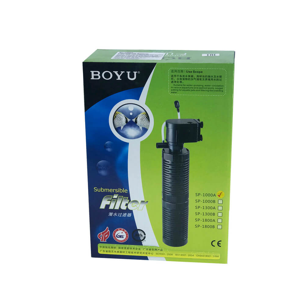 Внутренние аквариумные фильтры BOYU серии  SP-(А/В) — производительные и простые приборы для фильтрации и аэрации в аквариумах от 60 до 140 литров.