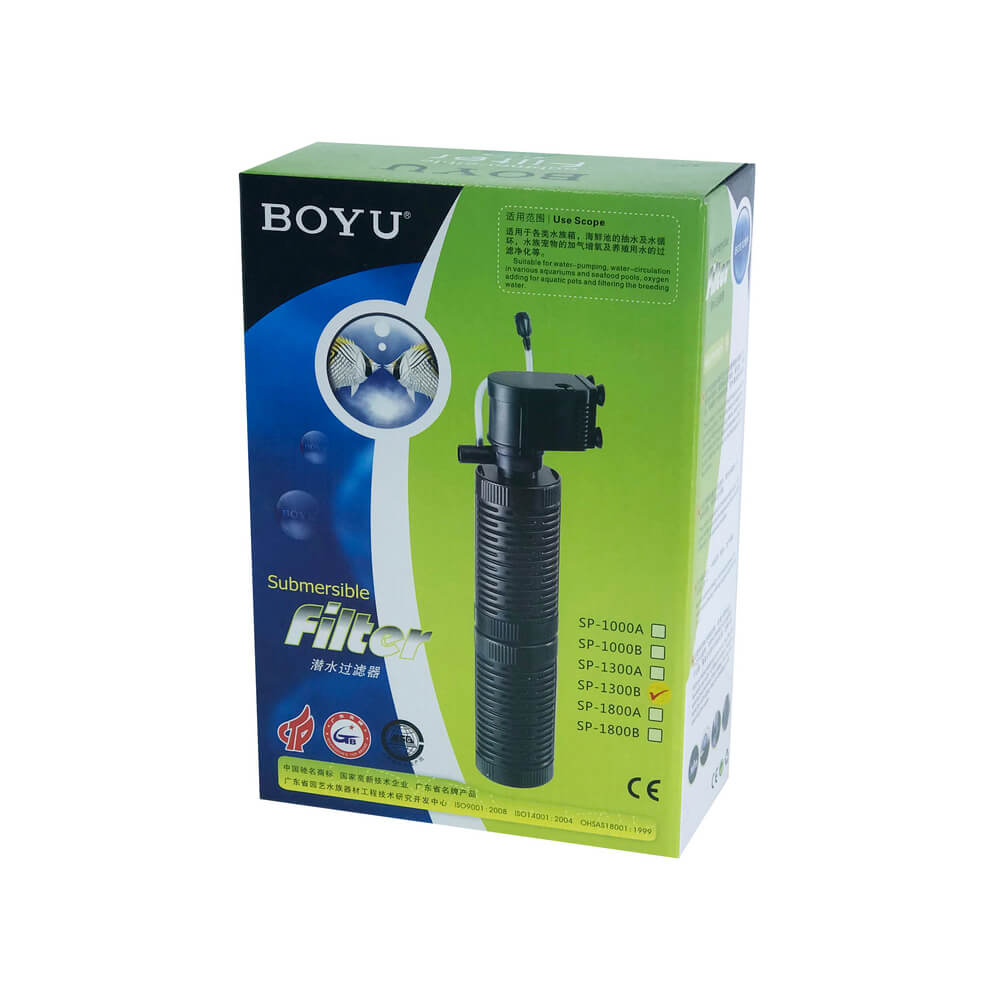 Внутренние аквариумные фильтры BOYU серии SP-(А/В) — производительные и простые приборы для фильтрации и аэрации в аквариумах от 60 до 140 литров.