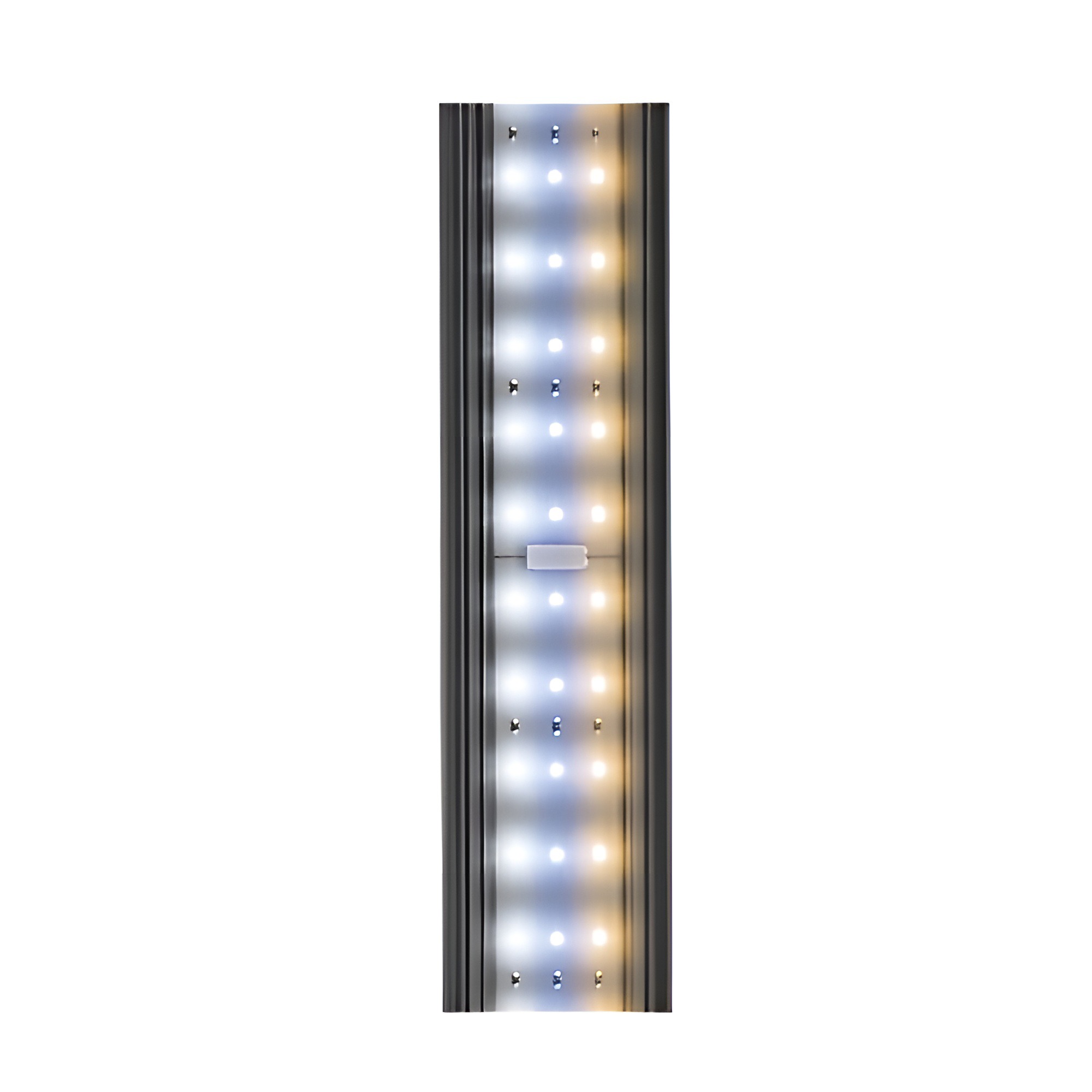 Панели-светильники можно отрегулировать по размерам под любой аквариум, расширив кронштейны до нужной длины. Раздвижные кронштейны из нержавеющей стали предназначены для удобства установки на горизонтальные планки аквариума, или для зацепа за края аквариума.