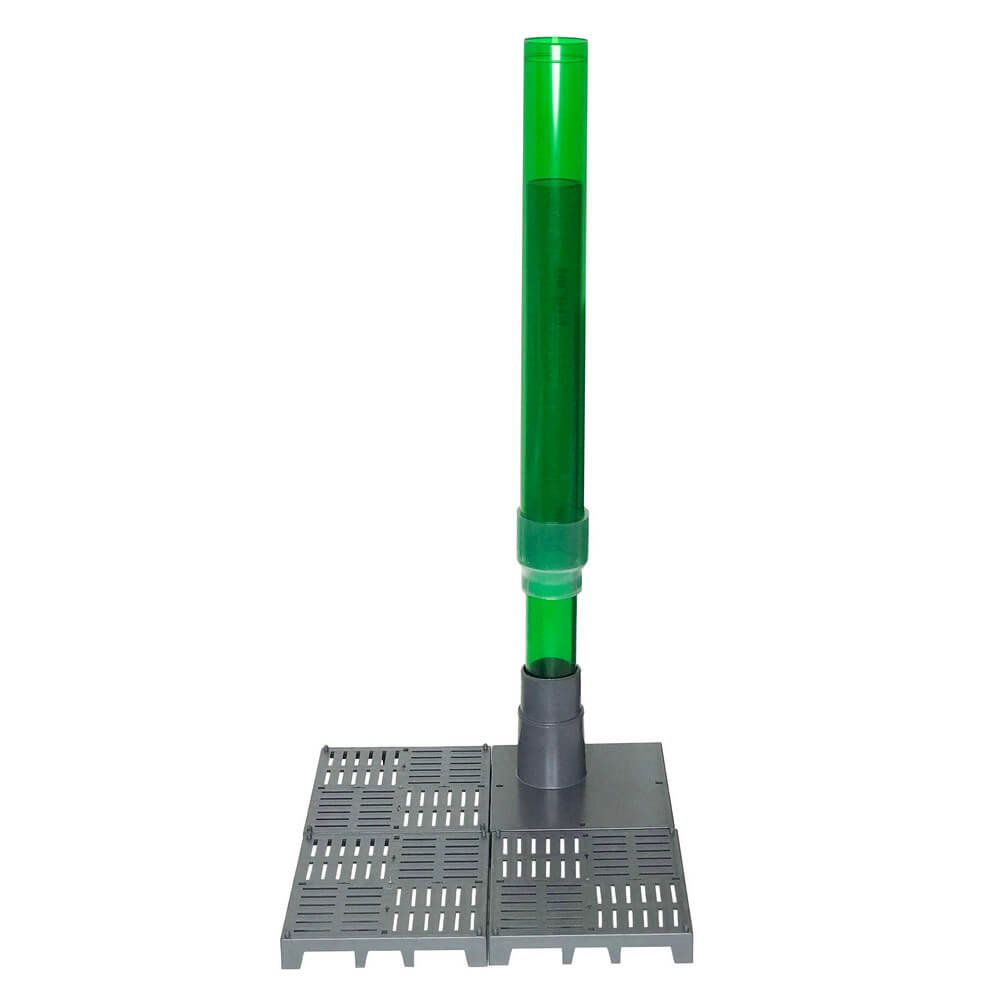 - Нештатный режим — очень практичный (классический): ВСАСЫВАЮЩИЙ. Сверху, в вертикальную трубу, вставляется насос (моторная «голова» — см. фото — приобретается отдельно). Этот насос выкачивает воду из-под донных пластин. Аквариумная вода, при этом, нисходящим потоком, опускается, проходя через слой грунта и очищаясь. Слой грунта рекомендуется бережно очищать сифоном — или при каждой чистке аквариума, или, как минимум, раз в полгода.